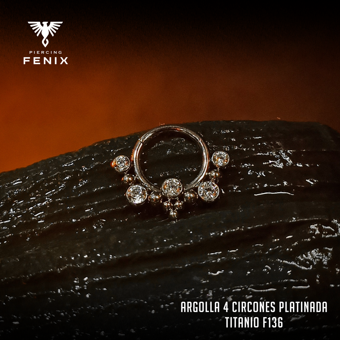 Argolla 4 Circones Platinada - TITANIO ASTM F-136