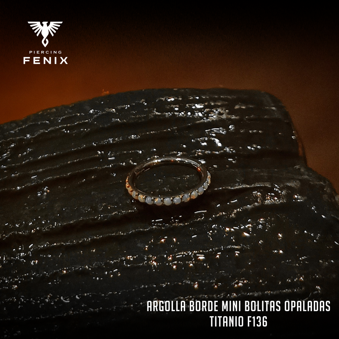 Argolla Borde Mini Bolitas Opaladas - TITANIO ASTM F-136