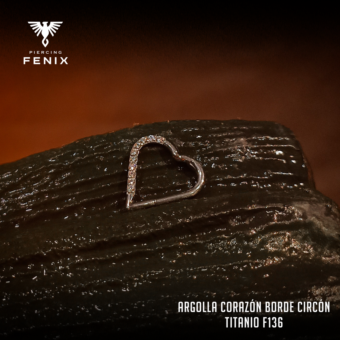 Argolla Corazón Borde Circón - TITANIO ASTM F-136