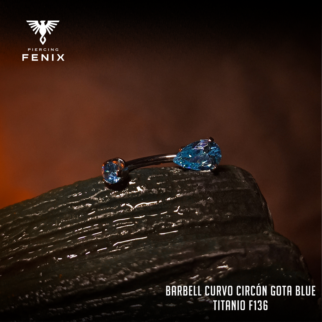 Navel Curvo Circón Gota Blue - Titanio ASTM F-136