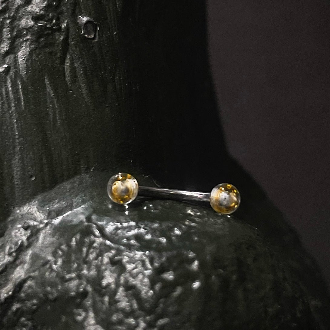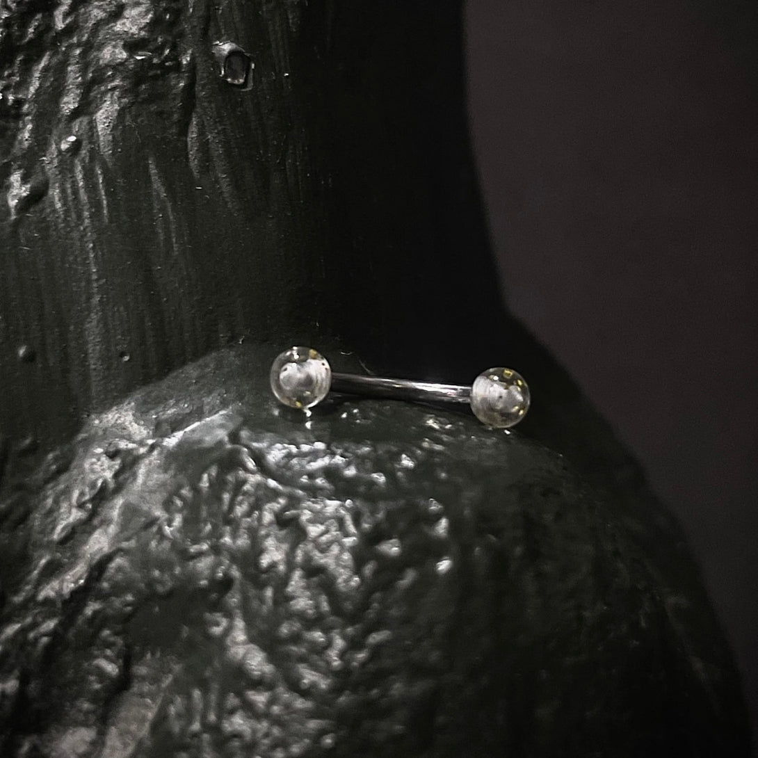 Añade un toque de brillo a tu estilo con nuestro Exclusivo Banano "Bolitas Glitter". Esta joya única destaca por su diseño versátil y la presencia de bolitas con destellos brillantes, ofreciendo una opción encantadora y llamativa para personalizar tu perforación.