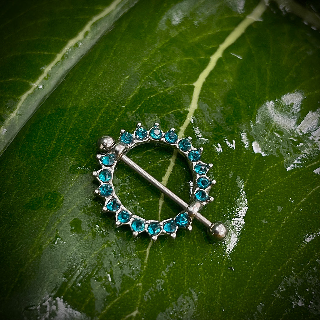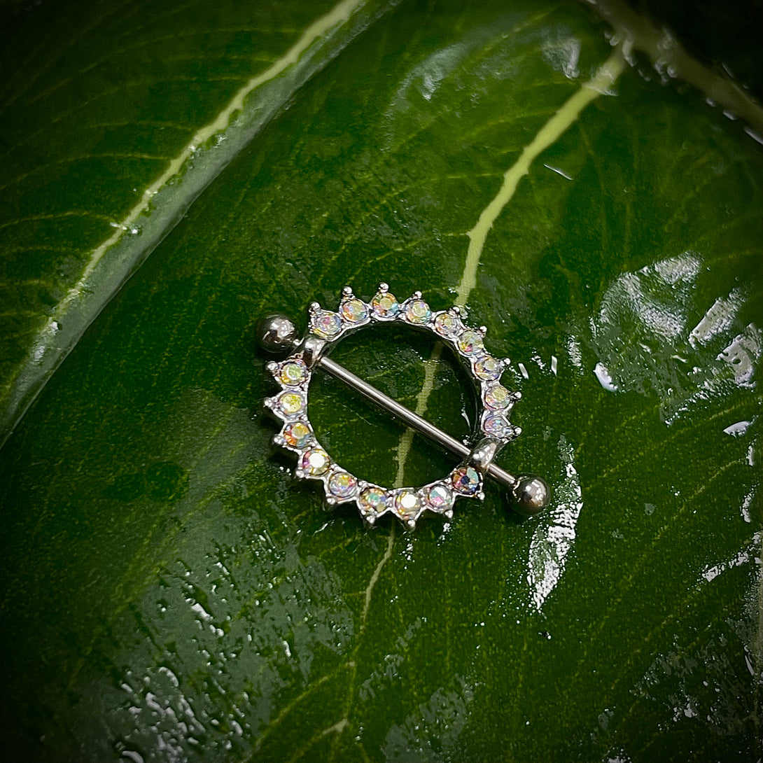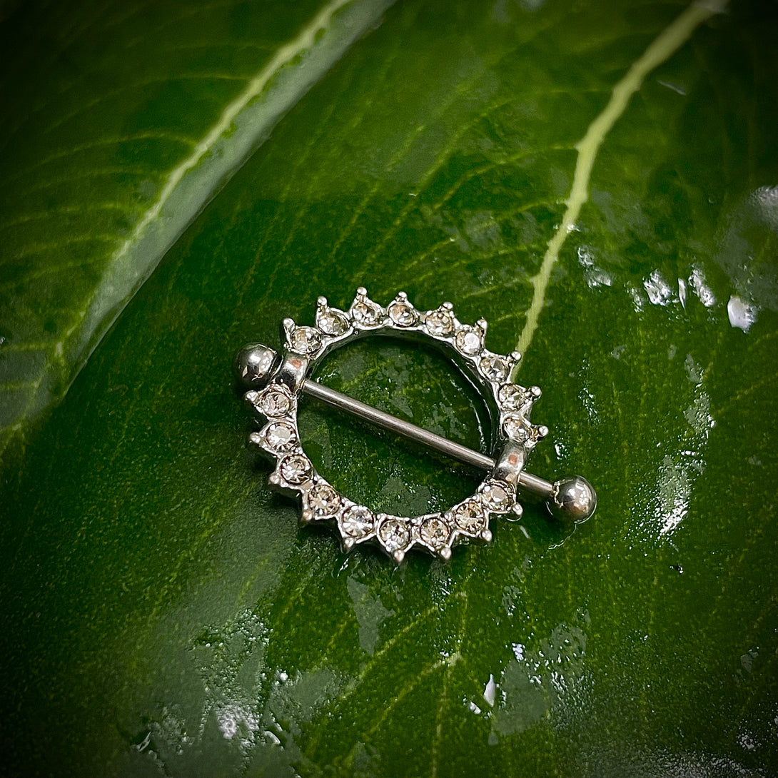Nuestro Exclusvio Diseño de Circulo Brillante Nipple con pequeños destellos de Acero Quirúrgico.