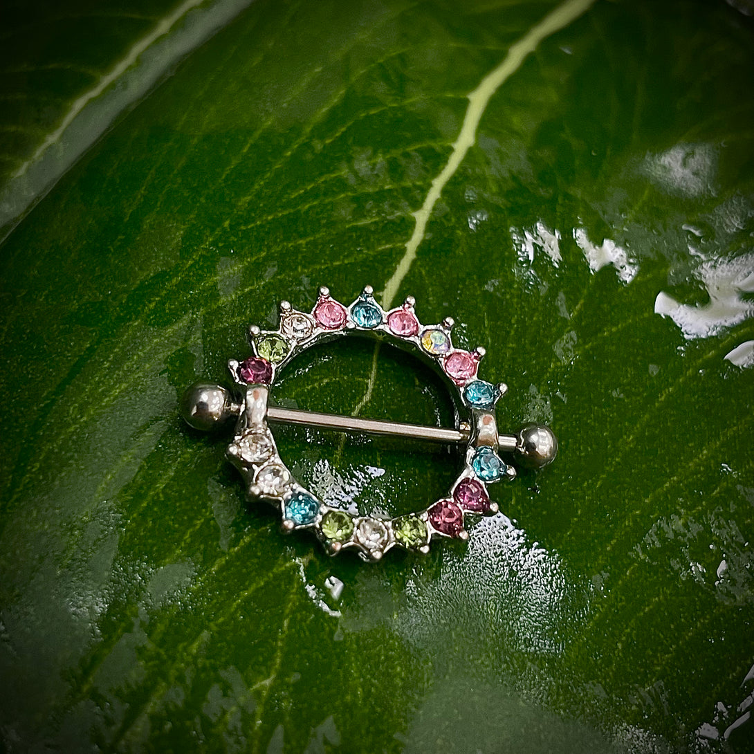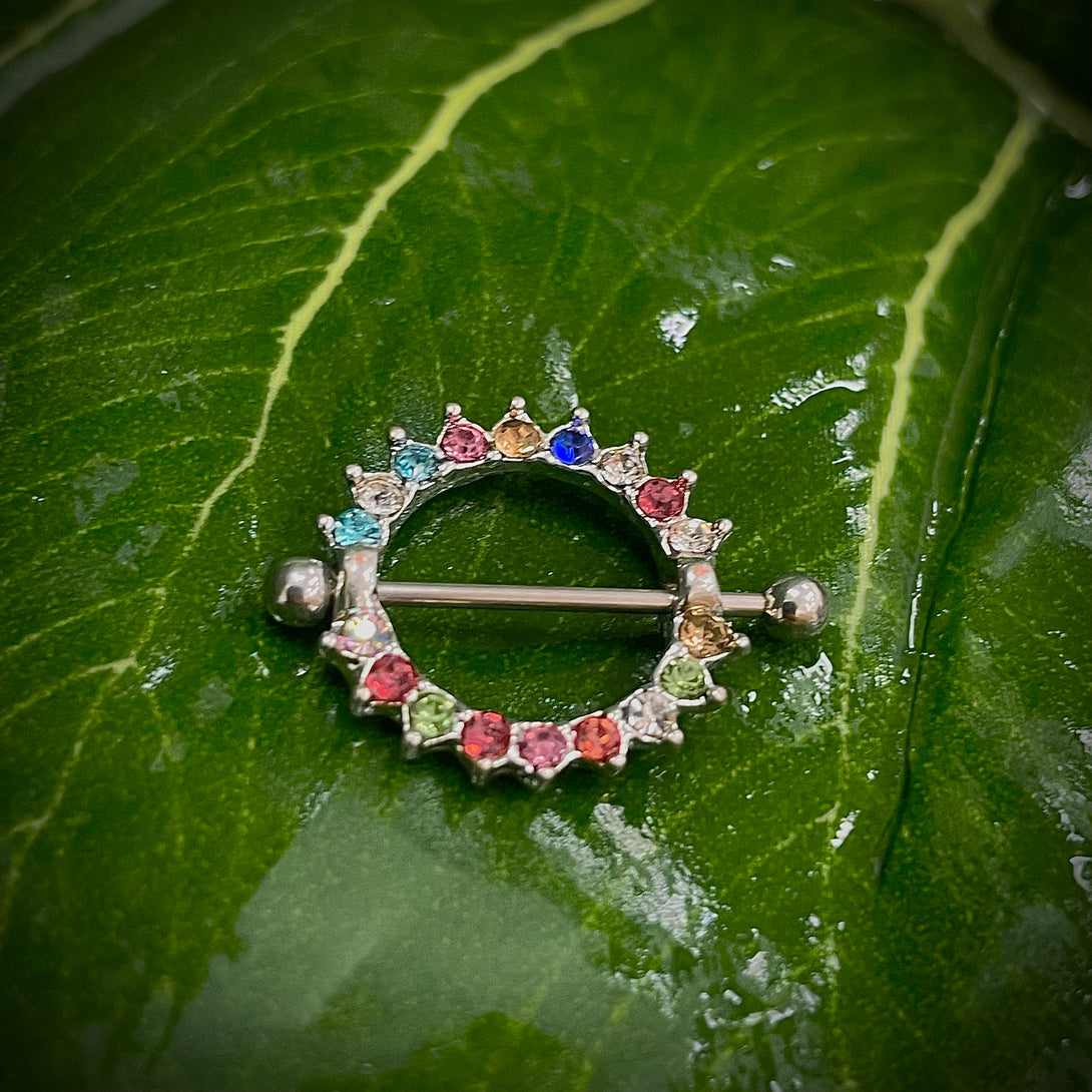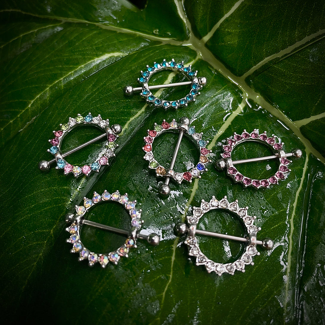 Nuestro Exclusvio Diseño de Circulo Brillante Nipple con pequeños destellos de Acero Quirúrgico.