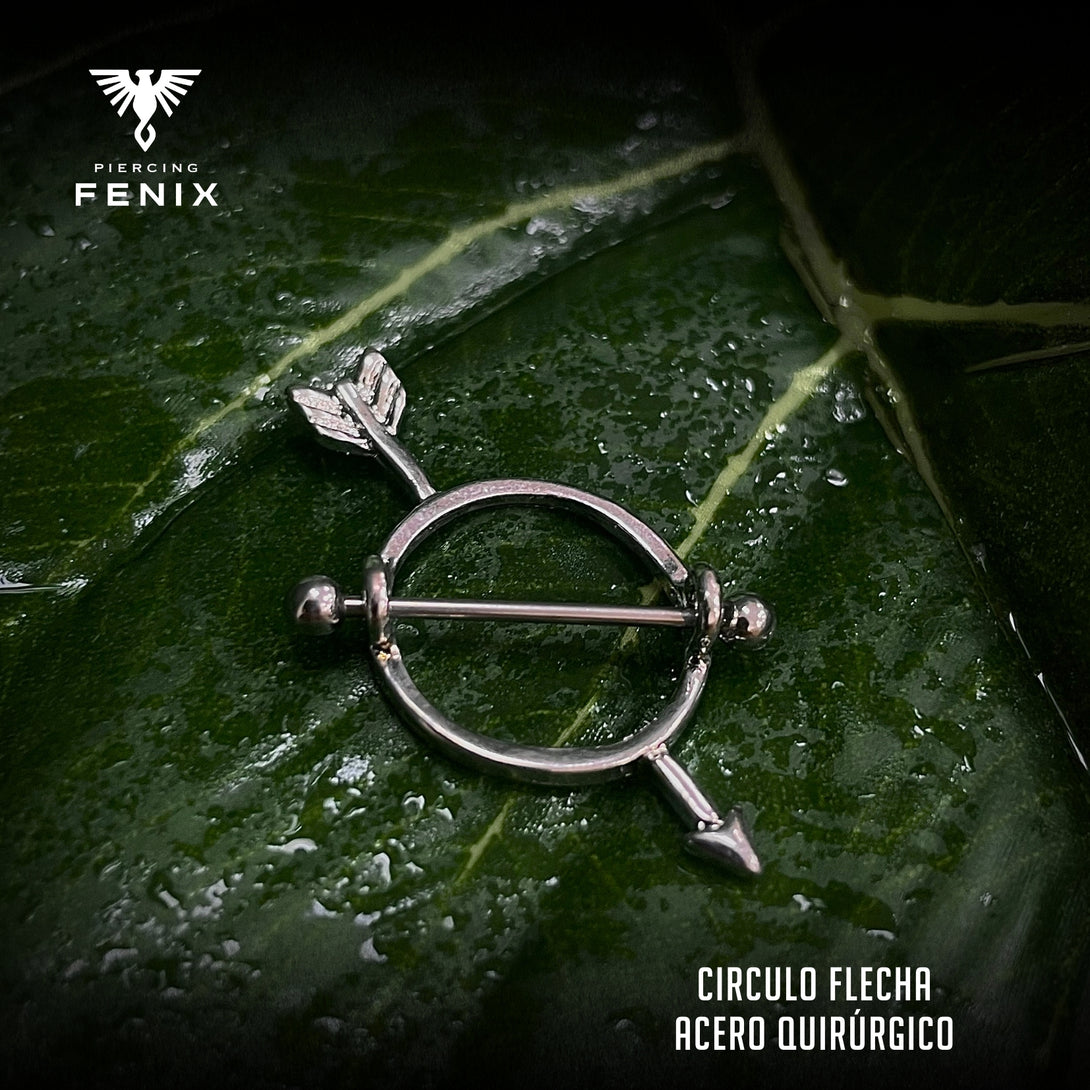 Eleva tu estilo con nuestro Exclusivo Diseño "Círculo con Flecha Nipple" en Acero Quirúrgico. Estas joyas únicas destacan por su diseño moderno y la presencia de una flecha atravesando un círculo, añadiendo un toque de intriga y distinción a tu perforación de pezón.