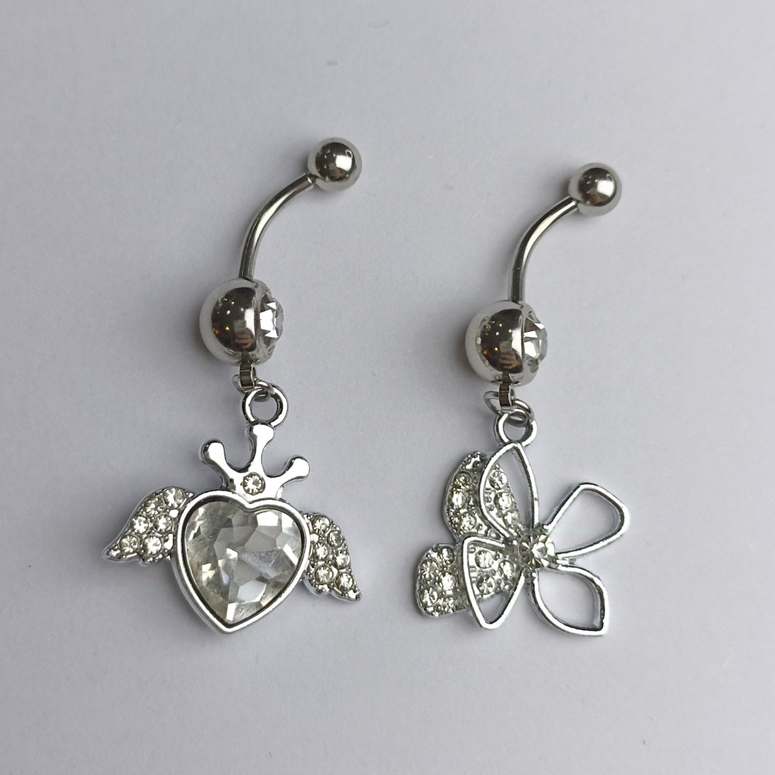 Conjunto 2 piercing colgante de ombligo acero quirúrgico y circon blanco