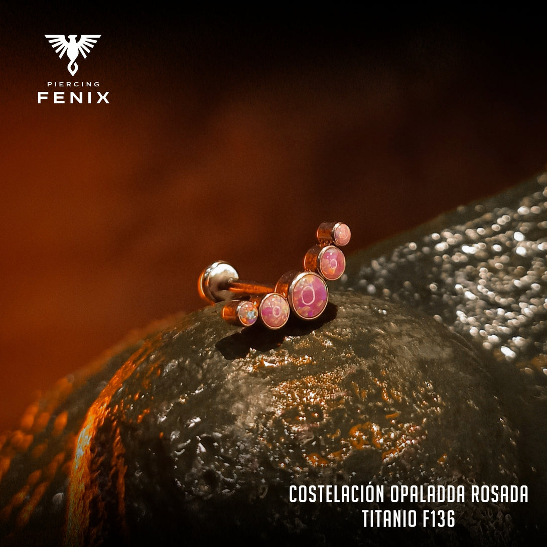 Explora la magia celestial con nuestra Exclusiva Joya "Constelación Opalada Tornasol" en Titanio F136. Esta pieza única destaca por su diseño inspirado en constelaciones, con ópalos que reflejan un hermoso tono tornasol, añadiendo un toque de encanto celestial a tu perforación.