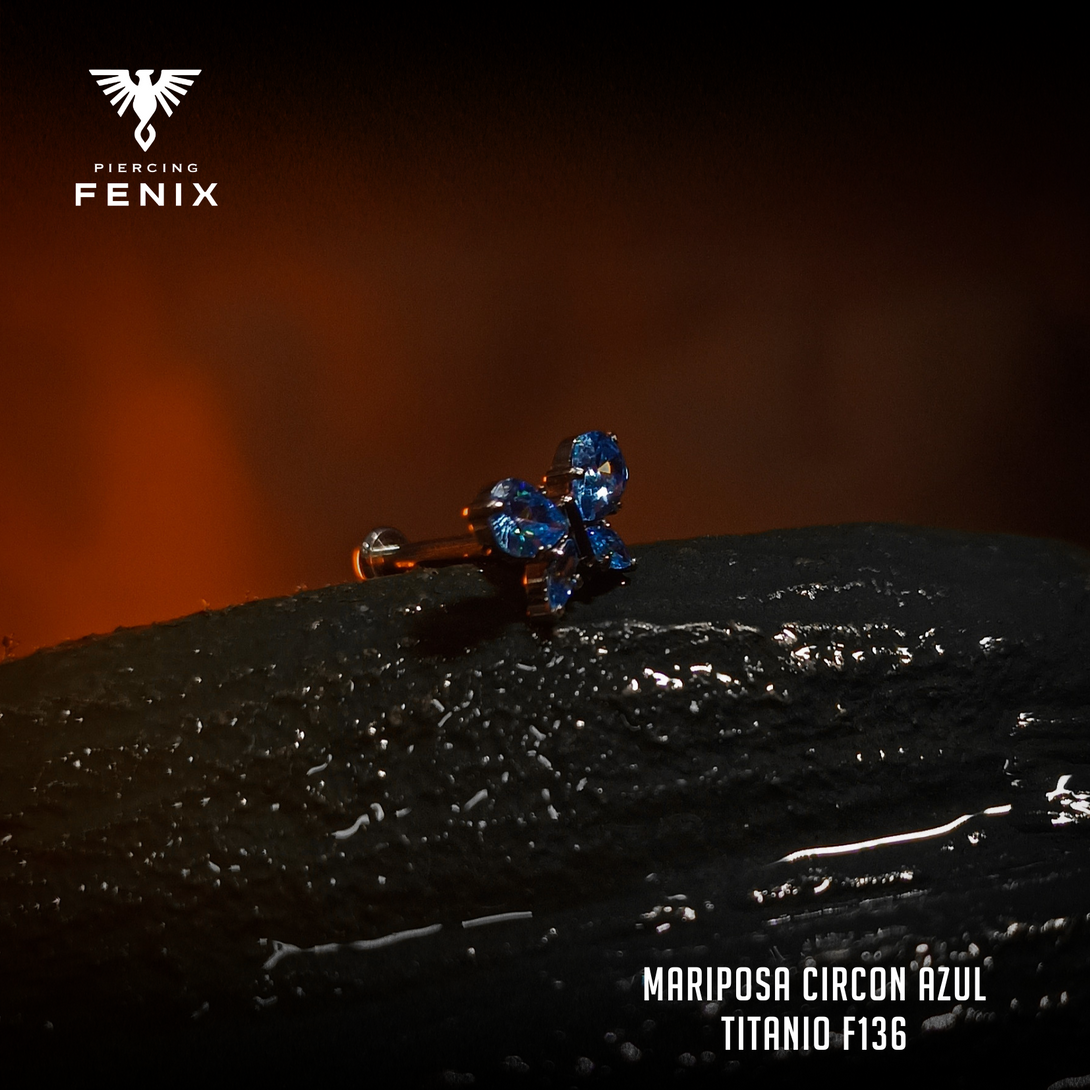 Despliega tus alas con nuestra Exclusiva "Mariposa con Circón Azul" en Titanio F136. Esta joya única destaca por su diseño encantador, realzado con un brillante circón azul, añadiendo un toque de elegancia y sutileza a tu perforación.
