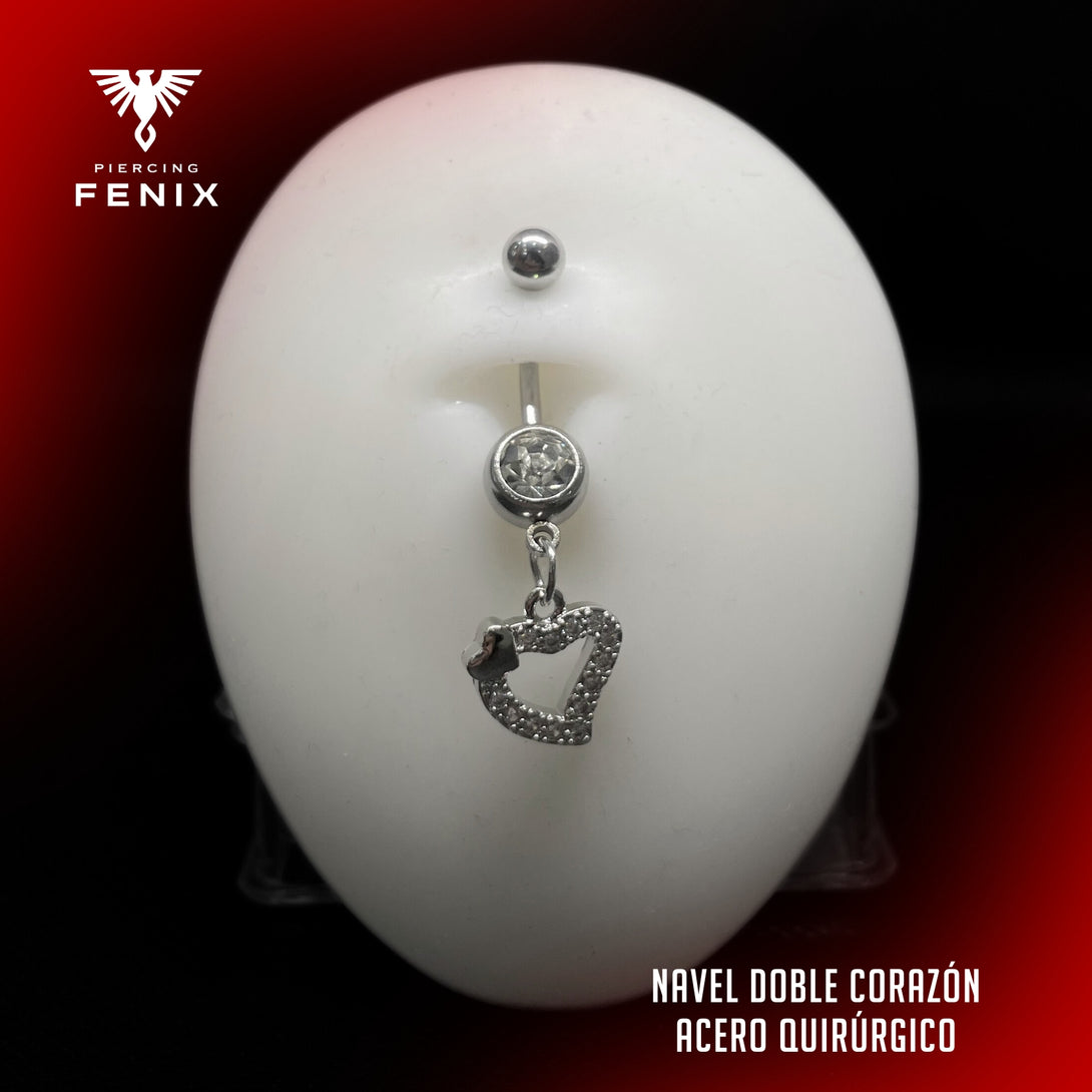 NAVEL CURVO DOBLE CORAZÓN - ACERO QUIRURGICO