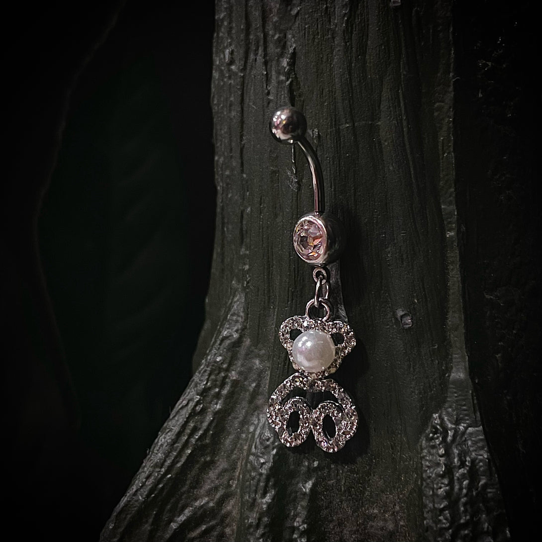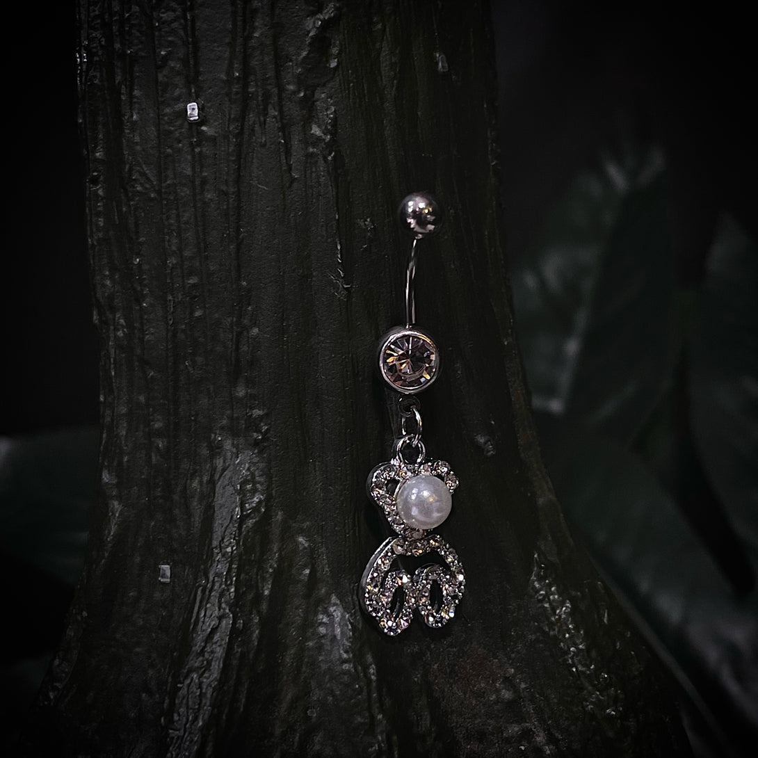 El oso, símbolo de ternura y cariño, cobra vida con un acabado perlado y una fascinante tonalidad tornasol que captura la luz de manera mágica. Fabricada con materiales de alta calidad, esta joyería para ombligo no solo es estilizada, sino también cómoda y segura para un uso diario.